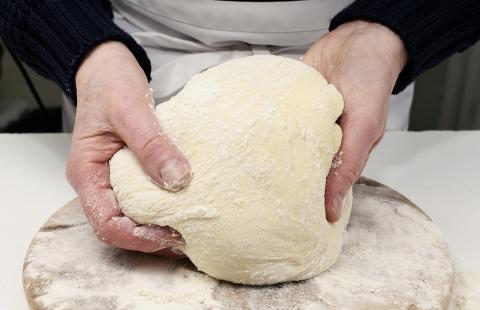Na pracovní plochu prosijeme mouku a přidáme nastrouhaný tuk. Uprostřed uděláme důlek, do kterého nalijeme mléko, přisypeme cukr a rozdrobíme kvasnice. Všechny suroviny zpracujeme v hladké těsto, které zabalíme a necháme zhruba hodinu odpočívat v lednici.