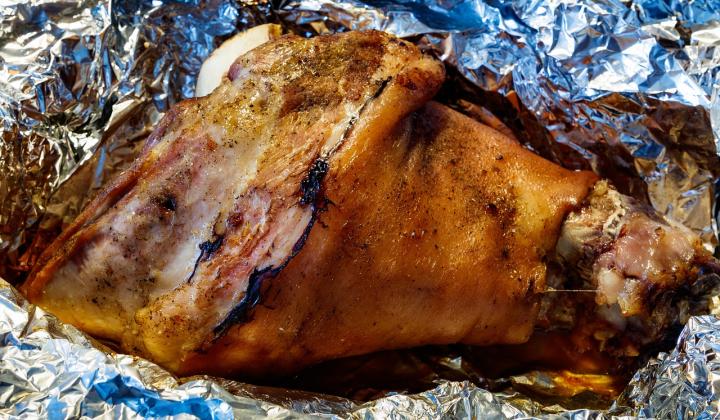 Uzené maso zalijeme horkou vodou, přivedeme k varu a 3-5 minut povaříme.