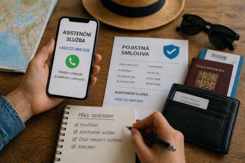 Pojištění si sjednejte několik dní před odjezdem, ne až na letišti ve spěchu. Hned po uzavření smlouvy si do telefonu uložte číslo asistenční služby pojišťovny — v případě problému volejte nejdříve tam a teprve poté řešte další kroky. Číslo smlouvy mějte raději i v peněžence, nejen v mobilu. Baterie se totiž vybíjí v tu nejméně vhodnou chvíli.