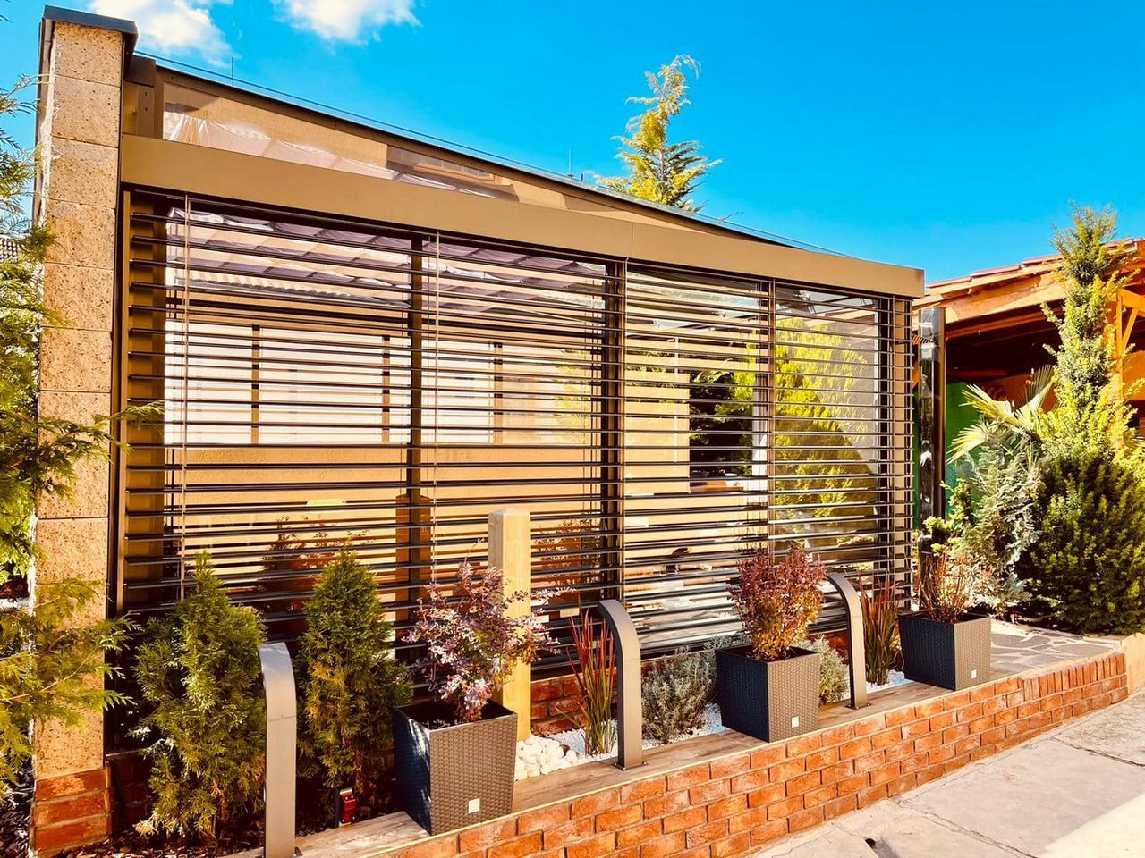 Zatímco terasa je obvykle otevřený prostor chráněný nejvýše pergolou či markýzou, zimní zahrada je uzavřená, zasklená konstrukce. To přináší rozdílné nároky na stínění.