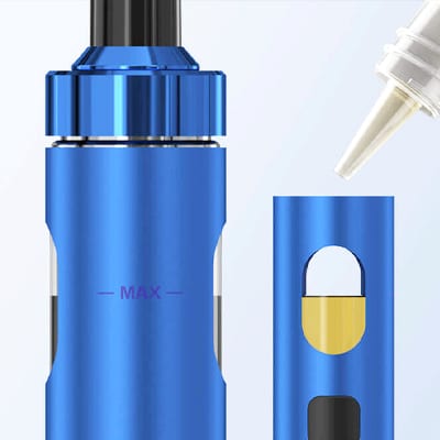 Vape pen – Má tvar pera s větší oddělenou nádobkou (tankem) a větší baterií. Tank se plní ručně. Výhody zahrnují delší výdrž baterie (několik dní), větší kapacitu tanku, vyměnitelné spirálky a vyšší výkon pro více páry. Tento typ je vhodný pro zkušenější uživatele. Nevýhodou je větší rozměr a potřeba údržby.
